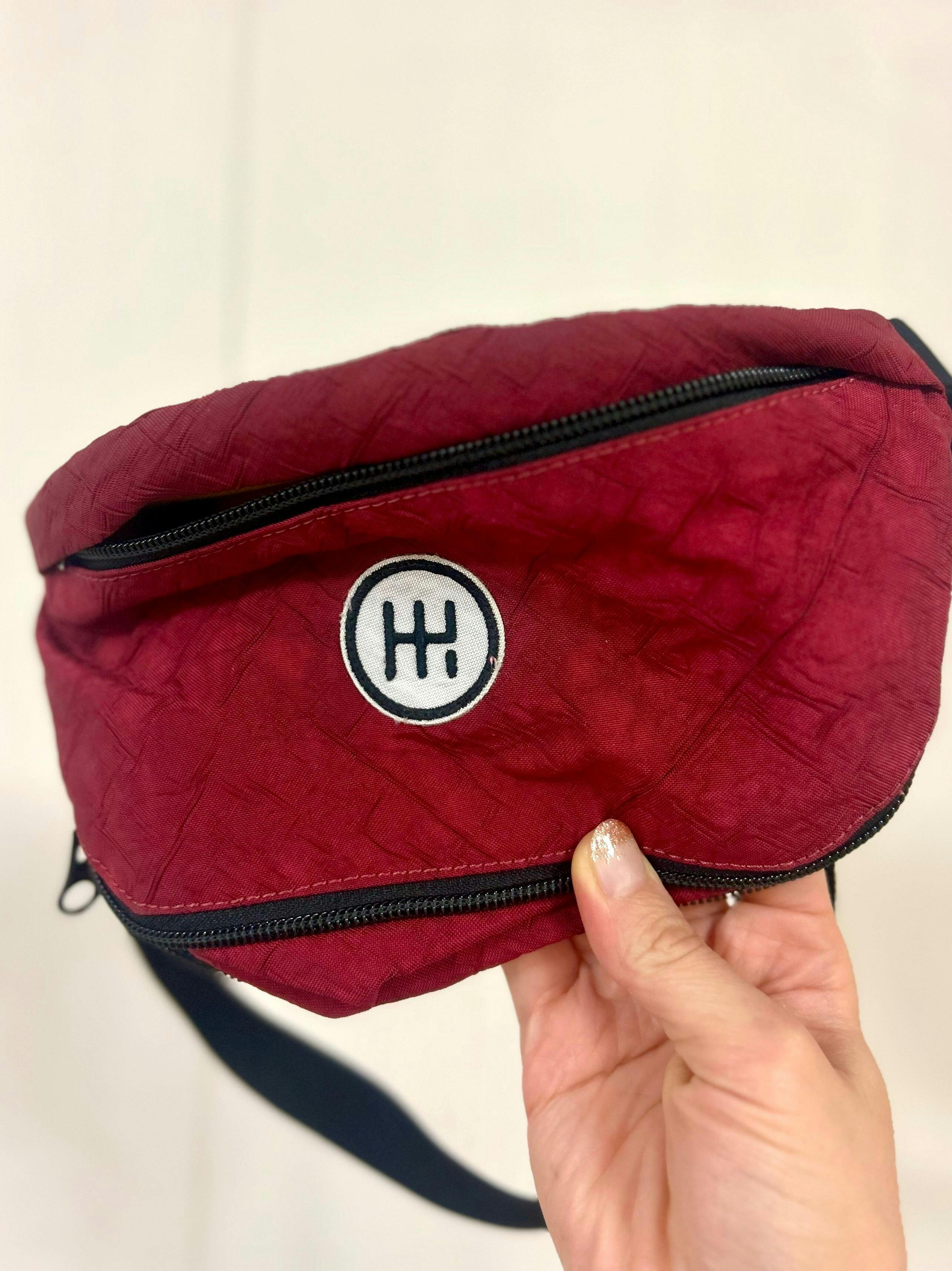 車のエアバッグの廃材をアップサイクルして作られたボディバッグ。
