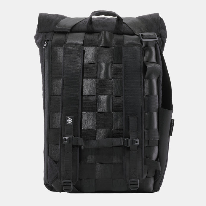 車のエアバッグとシートベルトの廃材をアップサイクルして作られた大きいサイズのバックパック。
