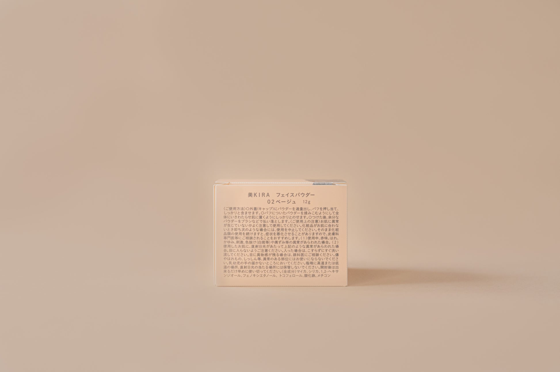 マイカ、シリカ、1,2-ヘキサンジオール、フェノキシエタノール、トコフェロール、酸化チタン