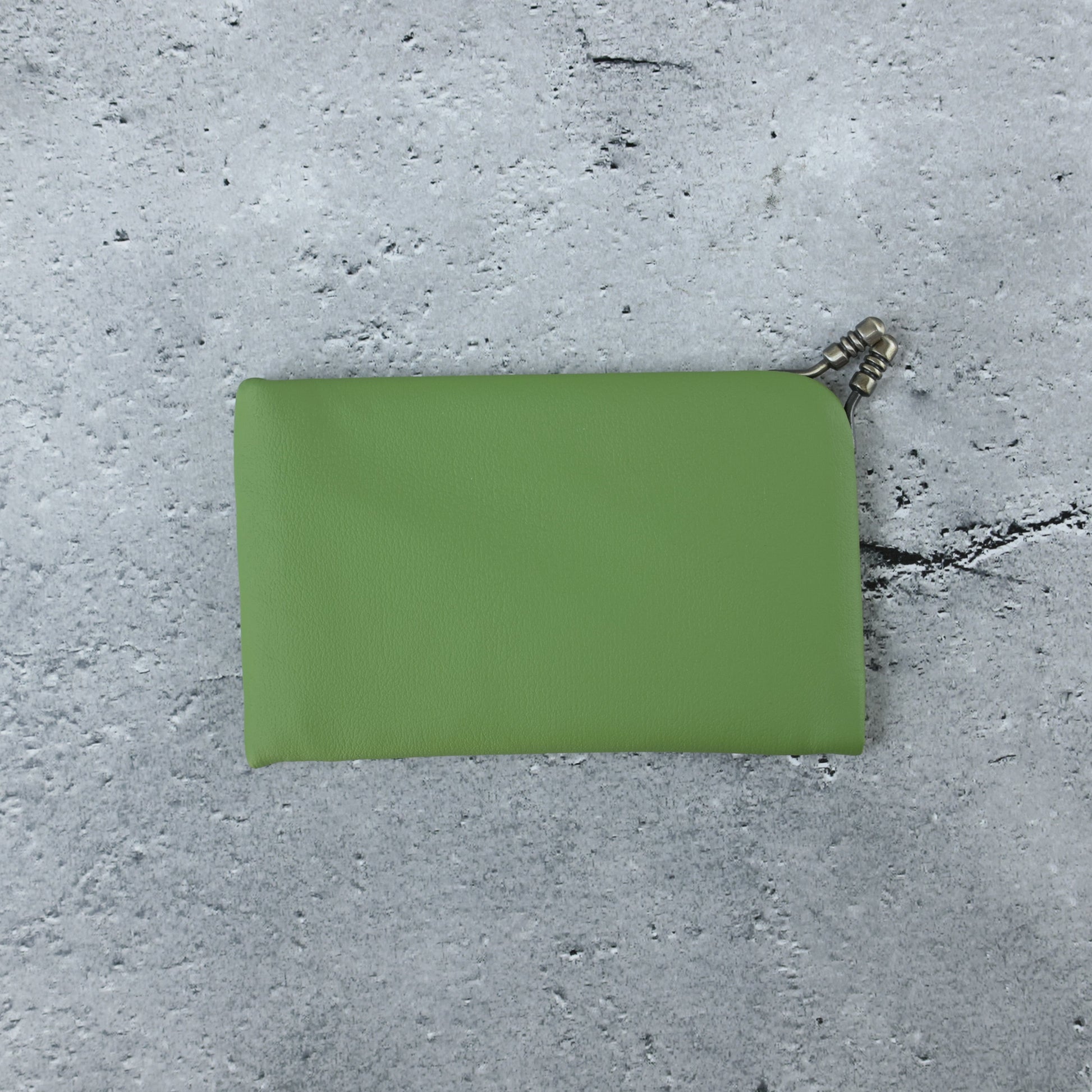 がま口は180度ほど開き、中が見やすくサッと出し入れしやすく、容量はクレジットカード等なら約10枚、名刺は25~30枚程度です。