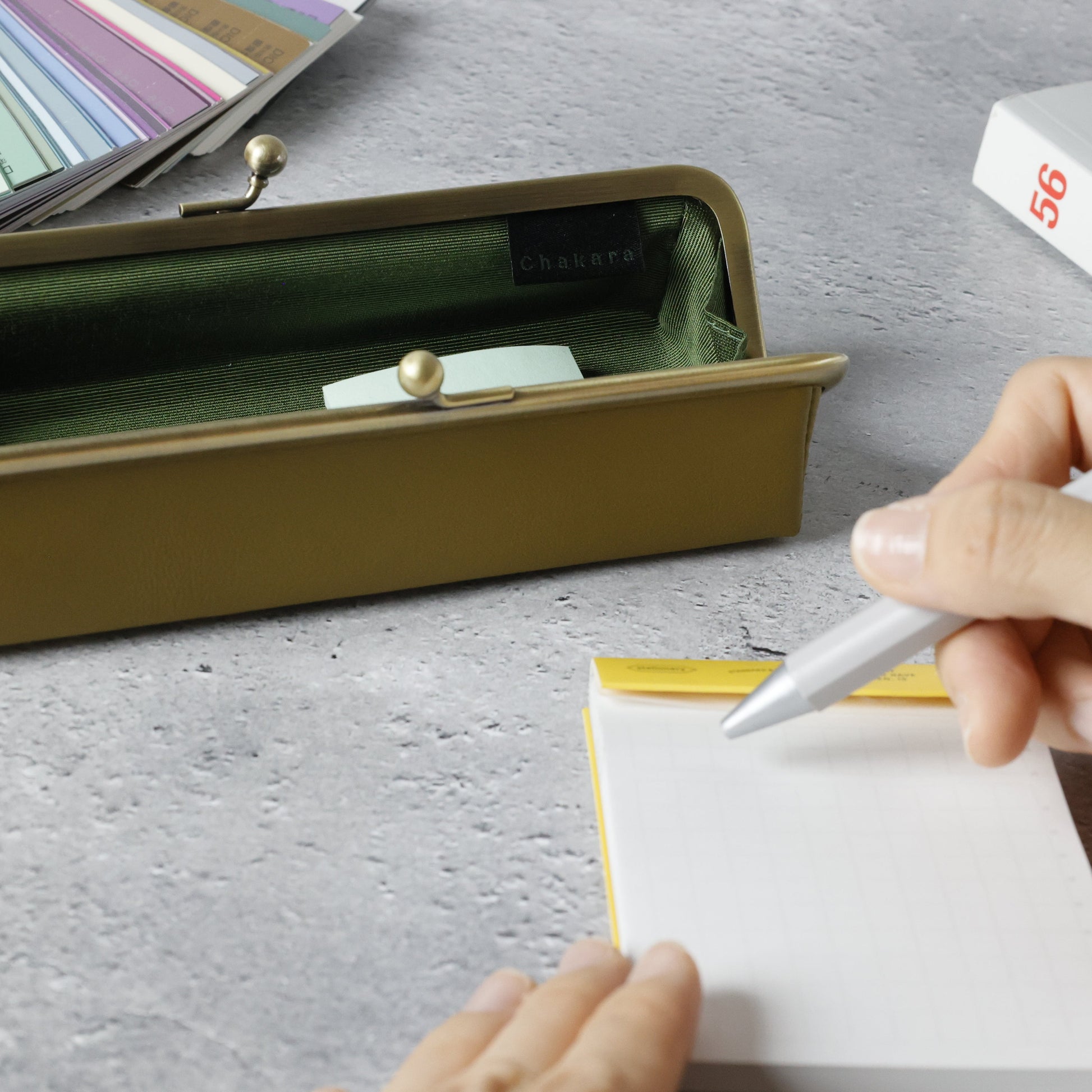 口が大きく開いたままの状態をキープできるので、ペンケースだけでなく小物入れとしてもオススメです。