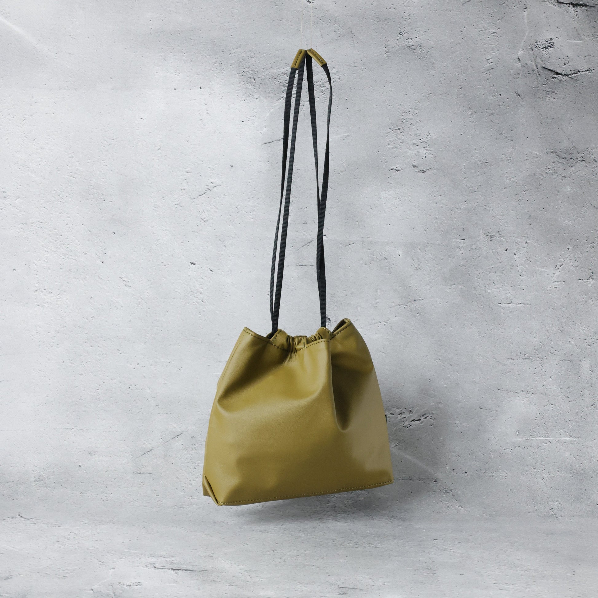 古くから日本で愛されてきた雑貨を入れる袋物「信玄袋」をもとにデザインした巾着バッグ。
