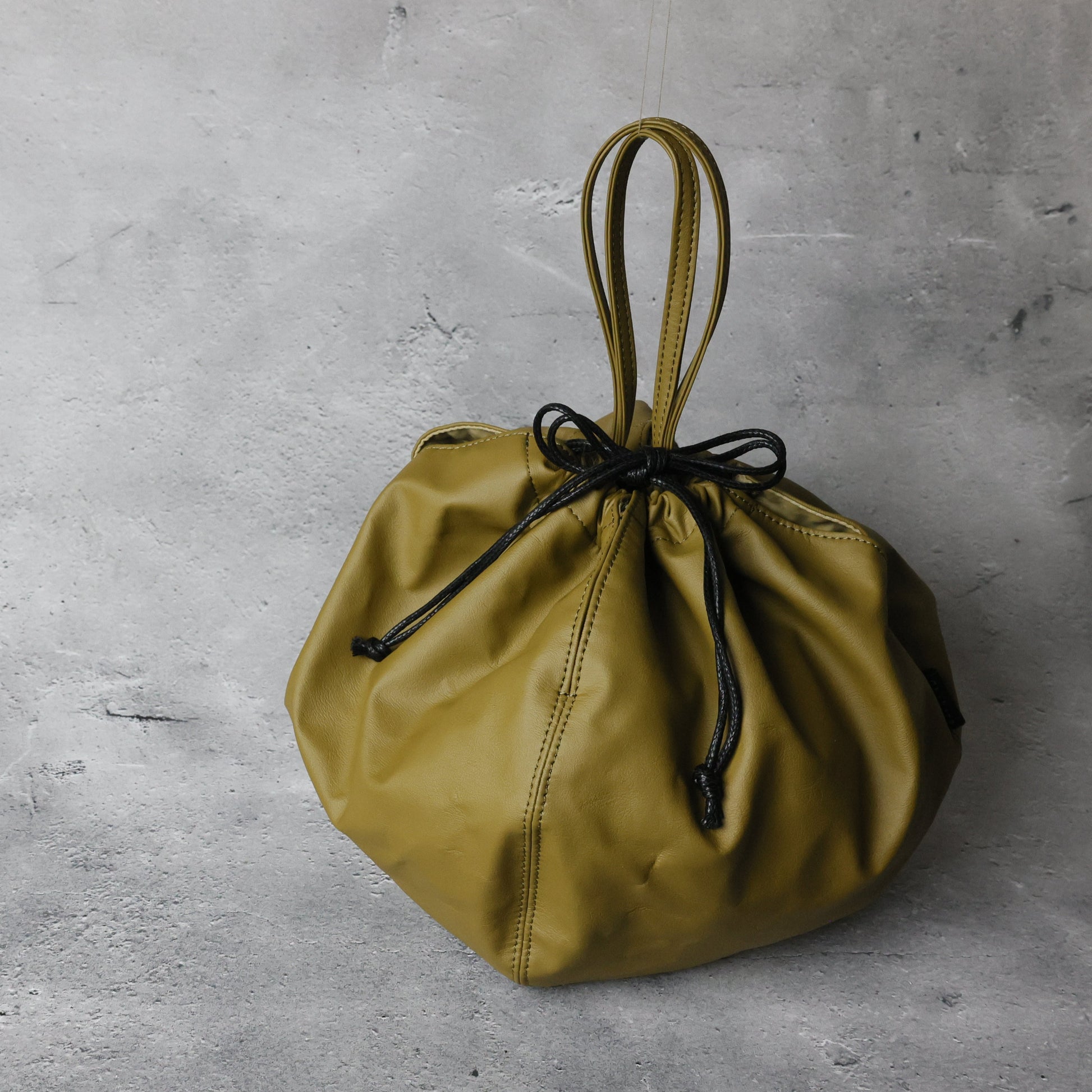 茶道具の茶入れや茶器を包む「仕覆(しふく)」をもとにデザインした巾着バッグ。