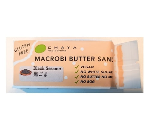 クッキー生地(国内製造)(米粉、オーガニックショートニング、大豆粉、粗糖、食塩)、マクロビバター(メイプルシロップ、カカオバター、ココナッツミルク、オーガニックショートニング、アーモンドペースト、麦芽水飴)、黒練り胡麻、黒磨り胡麻