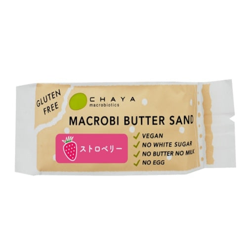 植物性の濃厚な「マクロビバター」にさわやかな甘みのストロベリーを、米粉と大豆粉を使用したグルテンフリーのクッキー生地にサンドしました。グルテンフリー。