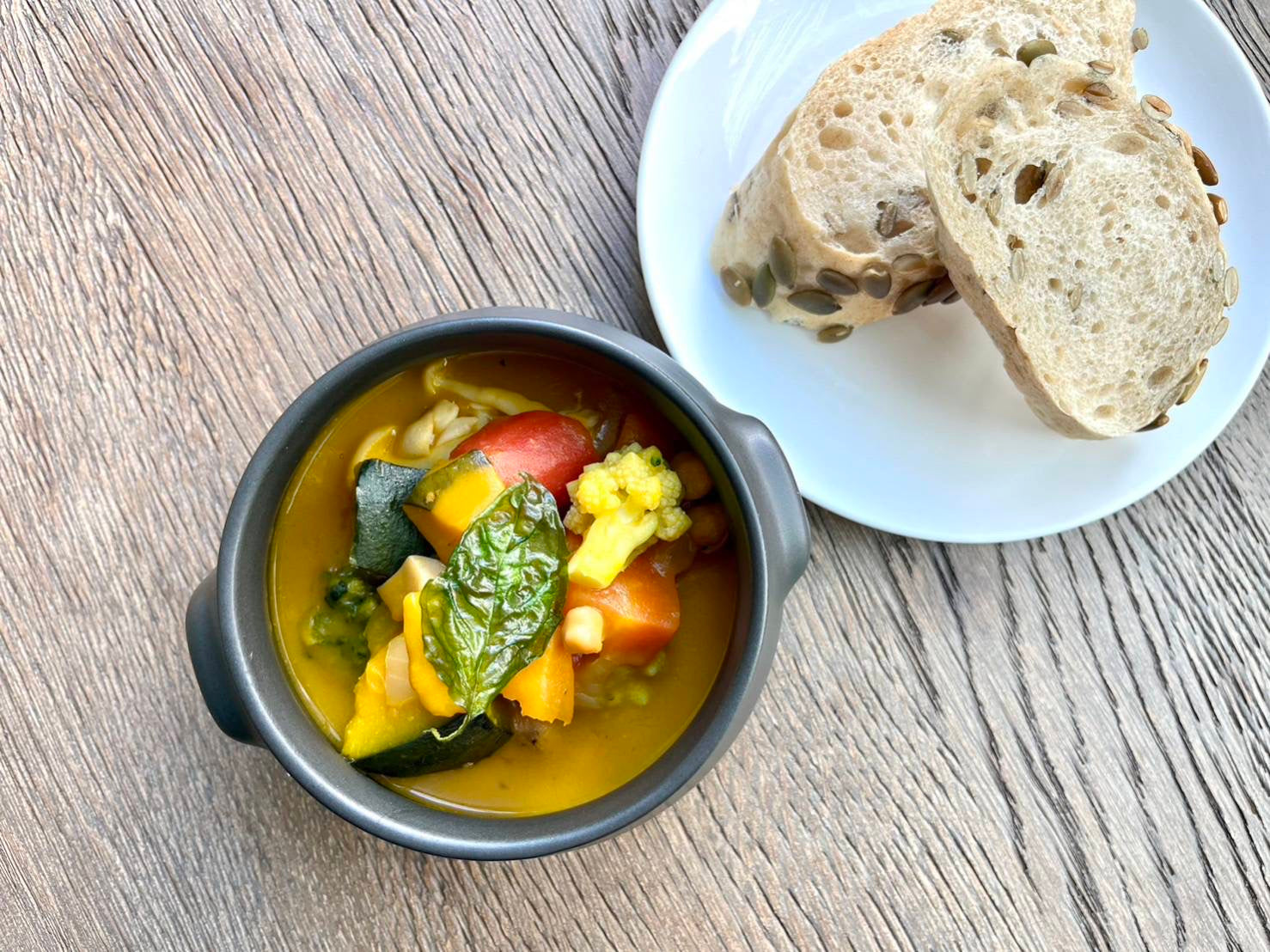 野菜(かぼちゃ、人参、玉ねぎ、エリンギ)、昆布だし(昆布 [国産])、かぼちゃペースト、ローストオニオン、ココナッツミルク、ひよこ豆、米粉、野菜ブイヨン、ココナッツオイル、菜種油、てんさい糖、にんにくペースト、食塩、酵母エキス、こしょう