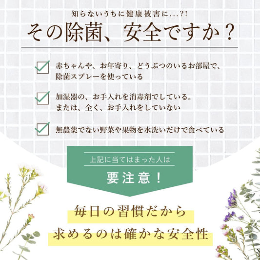 だから、口に入っても、吸っても、肌に触れても安心の除菌・消臭剤と洗浄剤です。