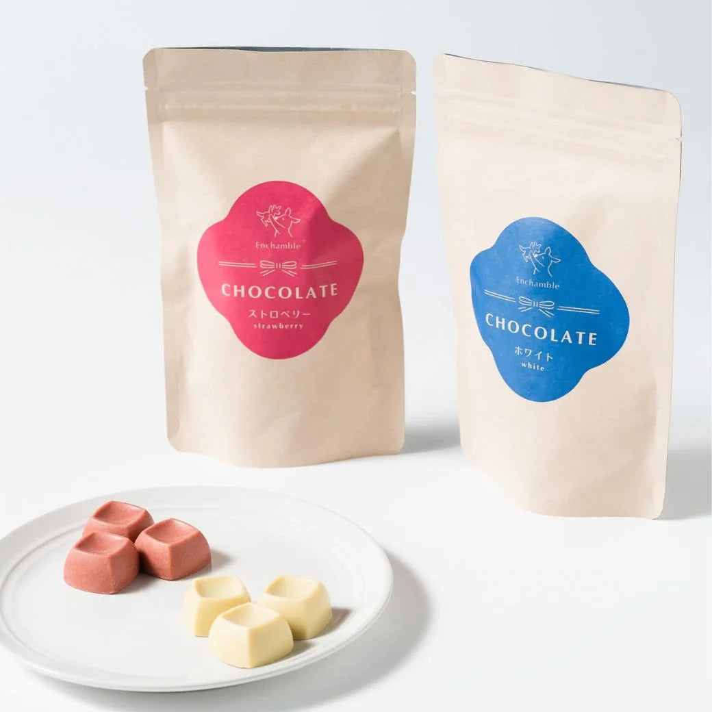 カカオバター、甜菜糖、全粉乳、乾燥粉末果実、ピロリン酸鉄、ビタミンB12、葉酸