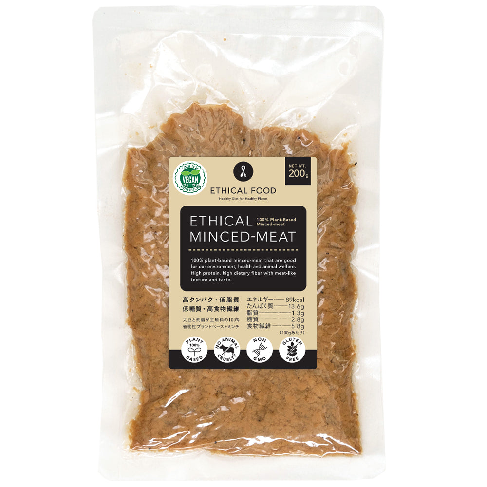 エシカルミンチは食物繊維が豊富な蒟蒻と、畑のお肉と呼ばれタンパク質を多く含む大豆を主原料とした100%植物性ミンチ肉です。