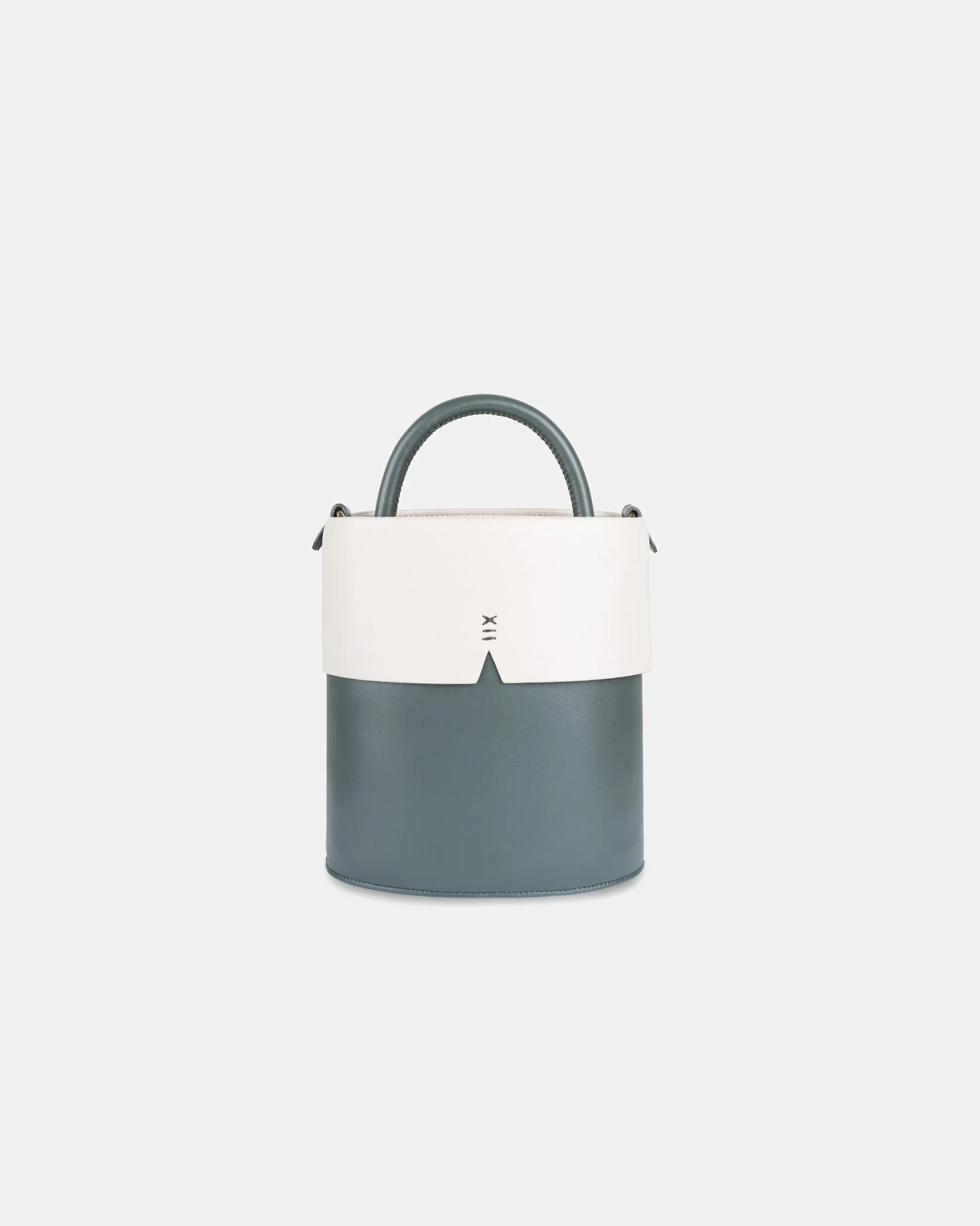 エレガントなミニバッグ。ラウンド型のハンドバッグに、幅広のショルダーストラップを取り外しすることで2WAYで使用できます。