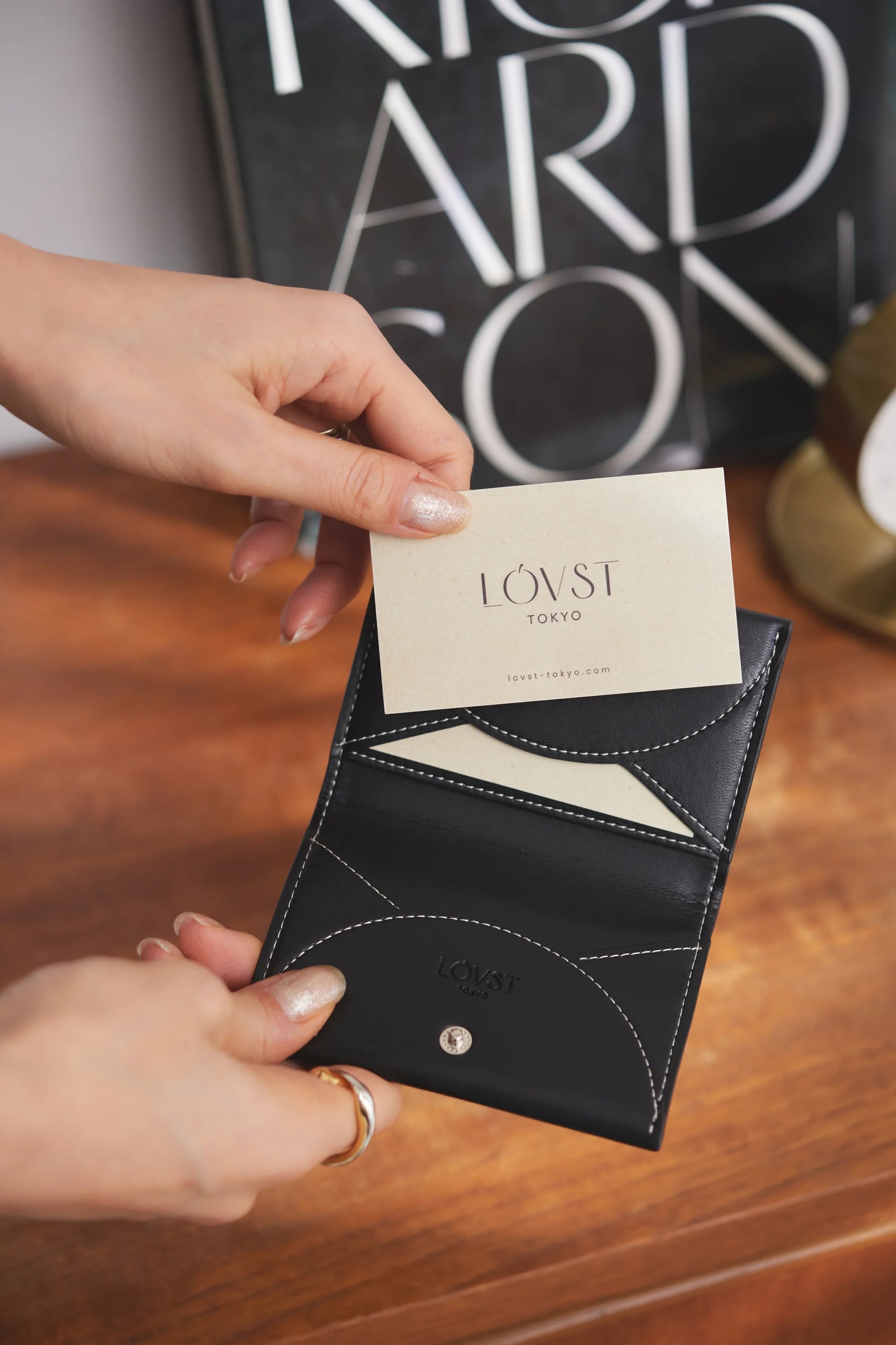 ・スナップボタンが付いているので、名刺をしっかり収納できて安心