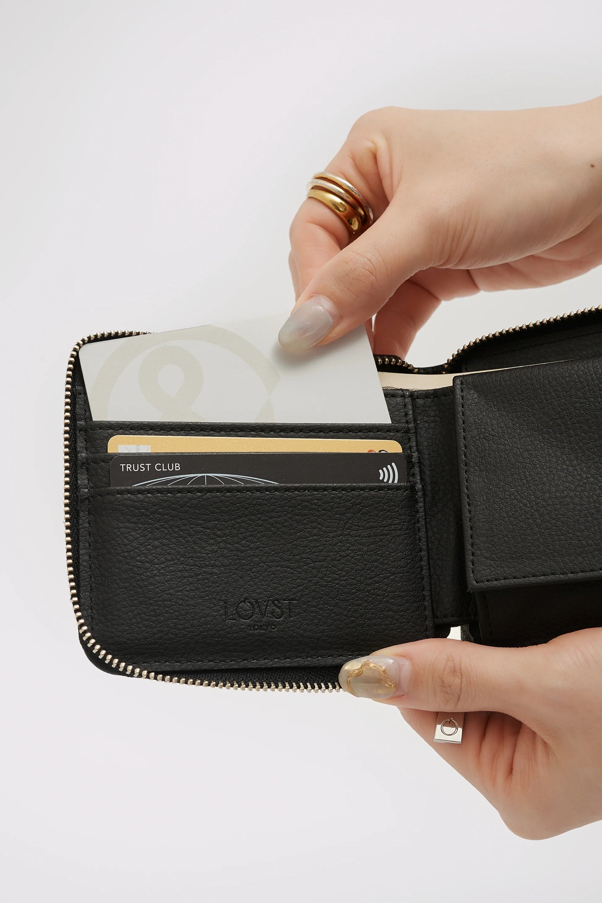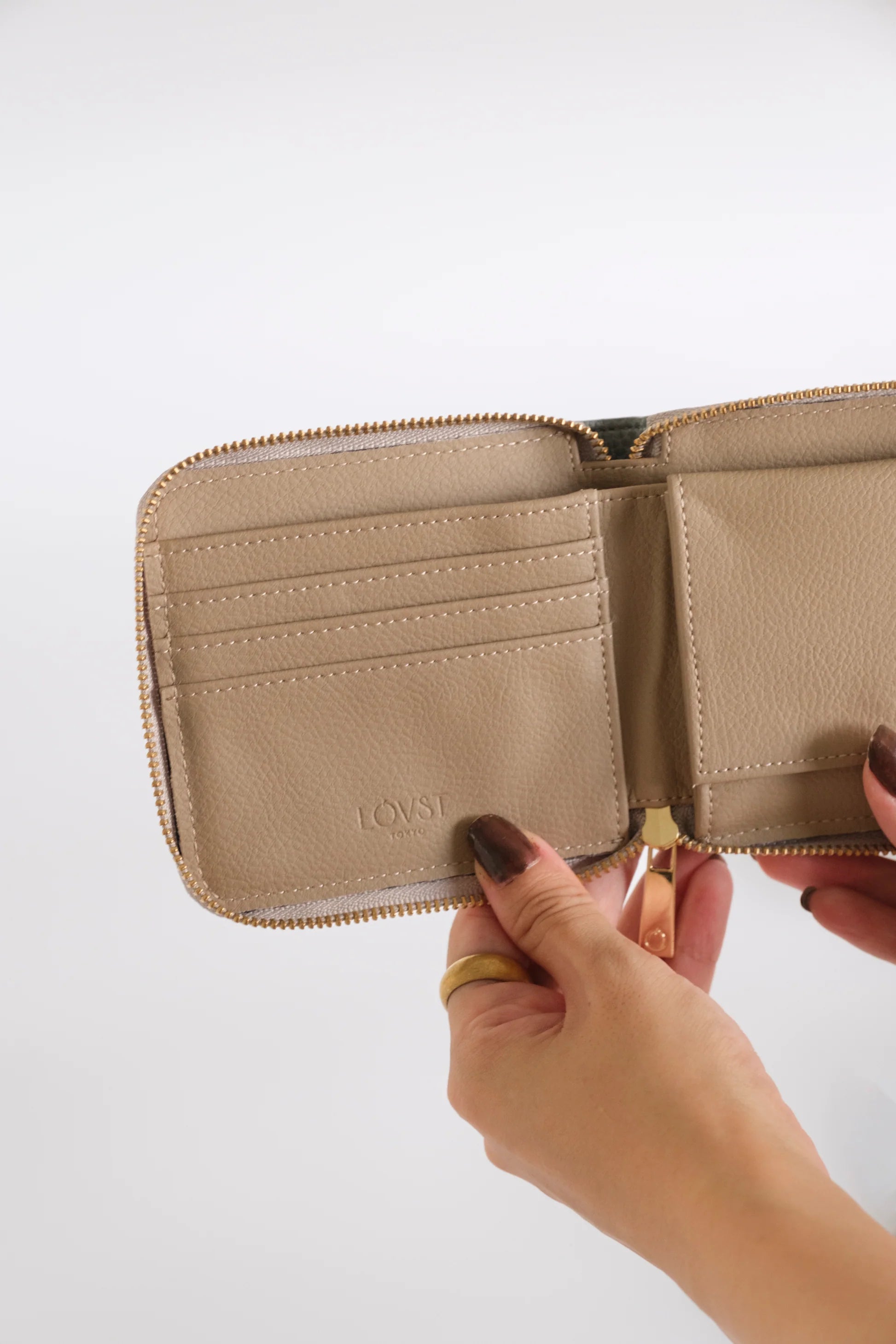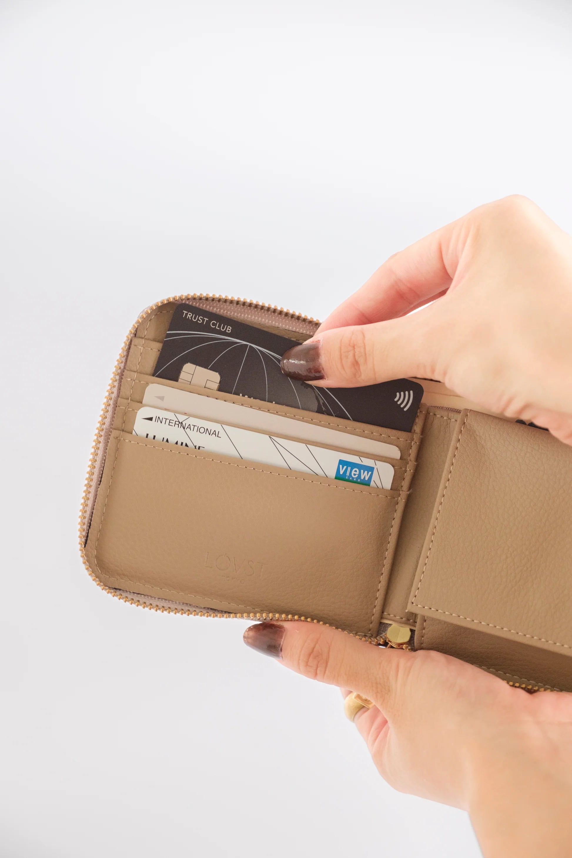 厚みが出てしまいがちな二つ折り財布ですが、極力スリムな形状にこだわり、中身を入れてもポケットやミニバッグに収まりやすい薄手のデザインになっています。