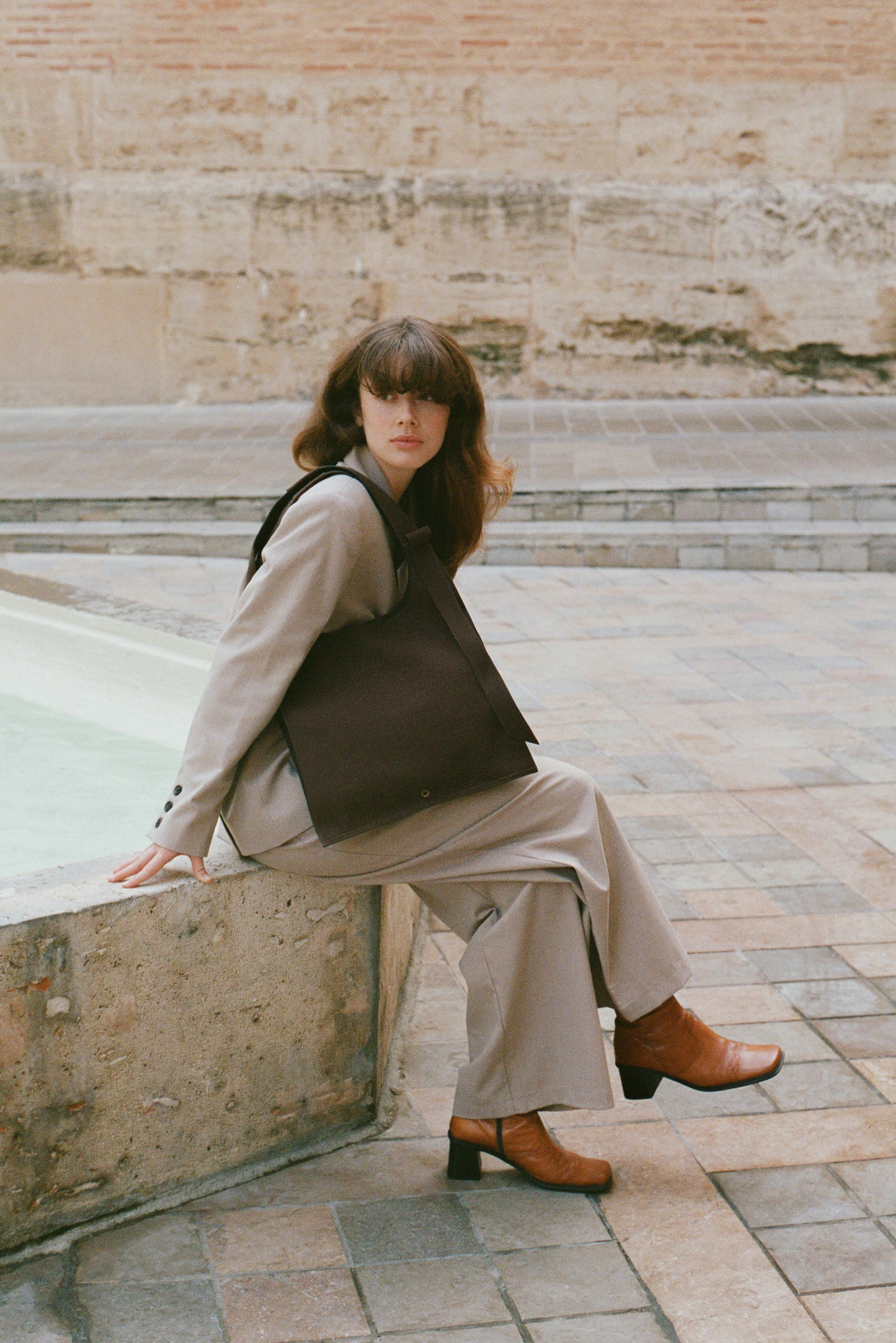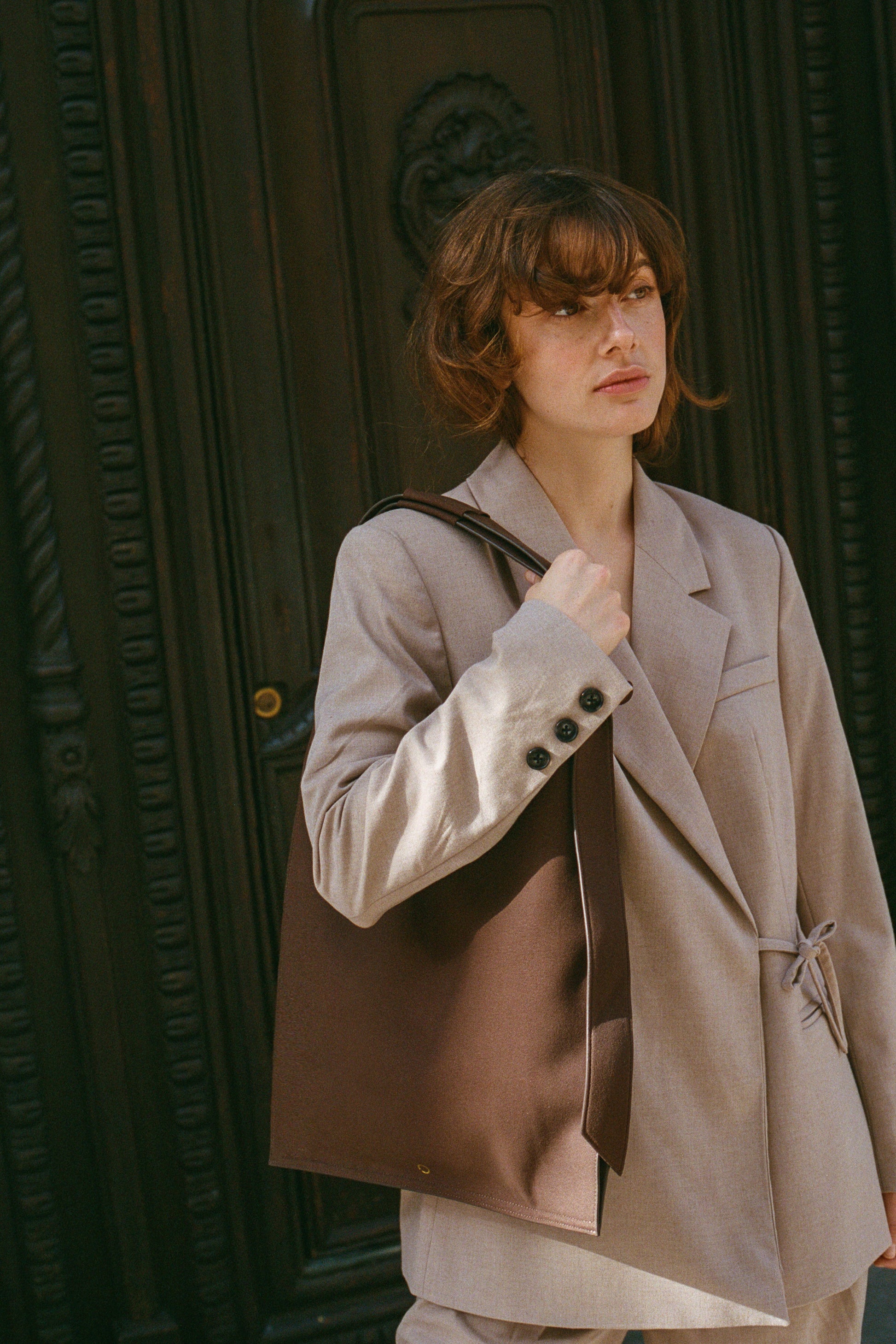 人気アイテムのBO Corn Leather Shopperを同じ形、仕様のままスエード生地で作りました。去年のものよりもグレードアップし、ブラウンの色味は少し濃いめのスモーキーな色合いで、カジュアルかつ、よりラグジュアリーに着こなしていただける仕様にしました。