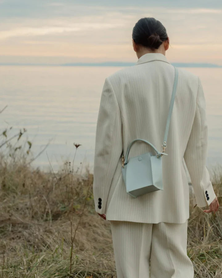 USDA認定のとうもろこしベースの素材を使用した、カートン型のミニバッグ。