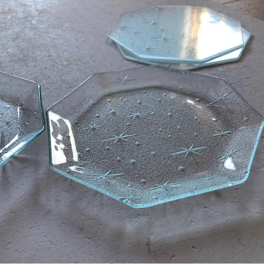 昭和の型板ガラスの八角皿(中)
