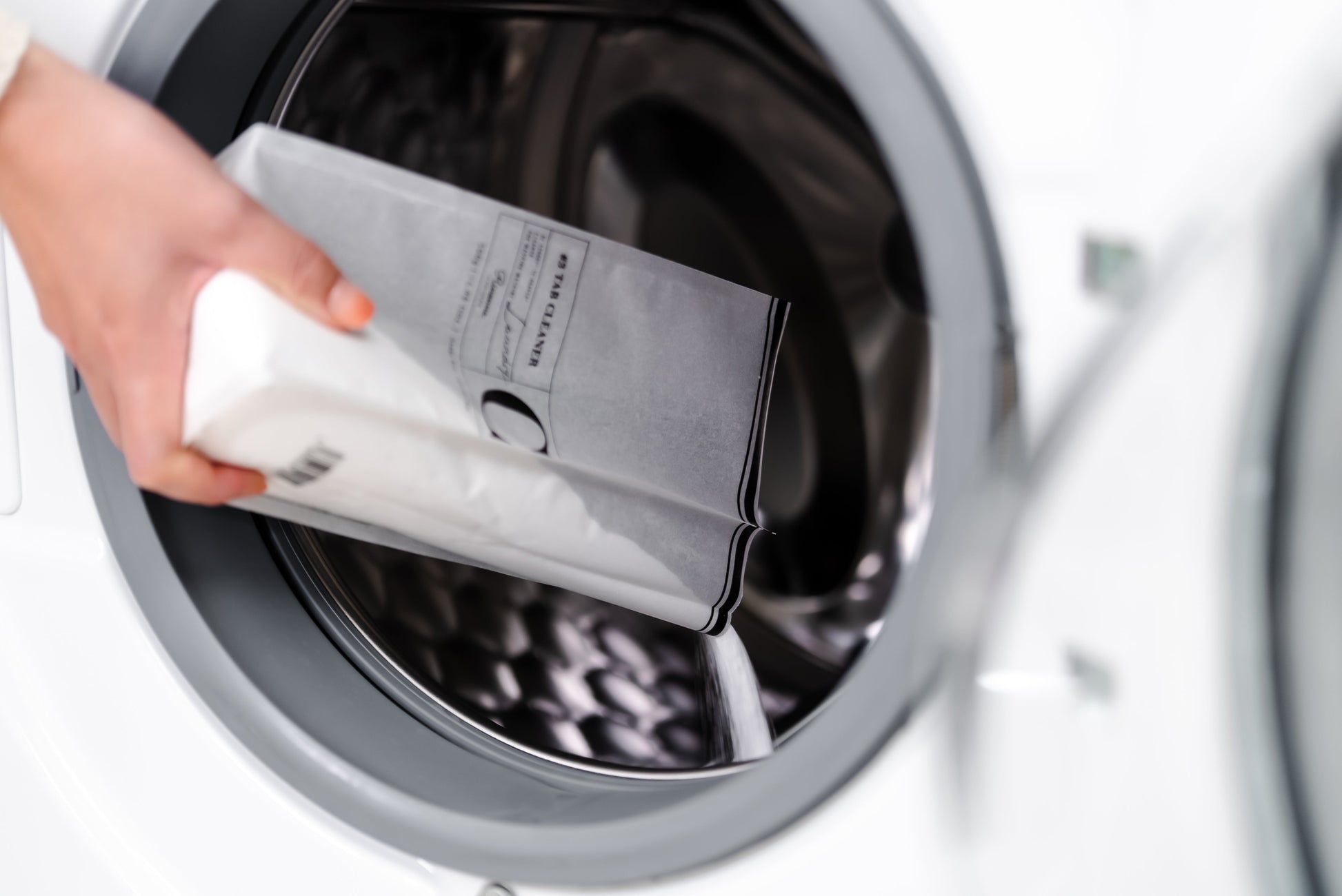 洗濯槽の裏側に生える黒カビを除去する洗濯槽クリーナー。