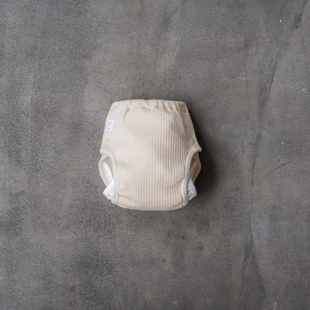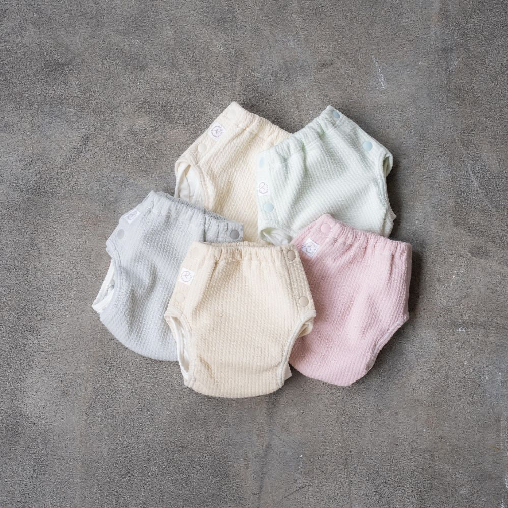 ルームウェア感覚で履かせることができる日本製の布おむつ。