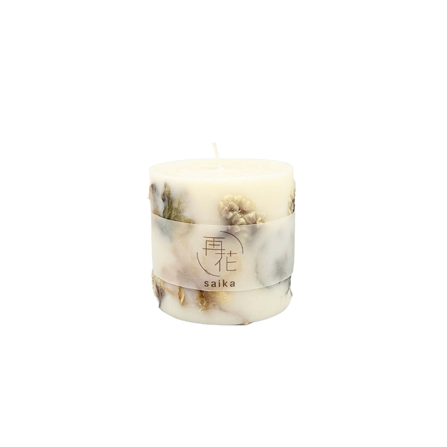 規格外や売れ残りなどの理由で、キレイに咲いているまま捨てられてしまう予定だった “ロスフラワー“ を使って作ったボタニカルキャンドルです。