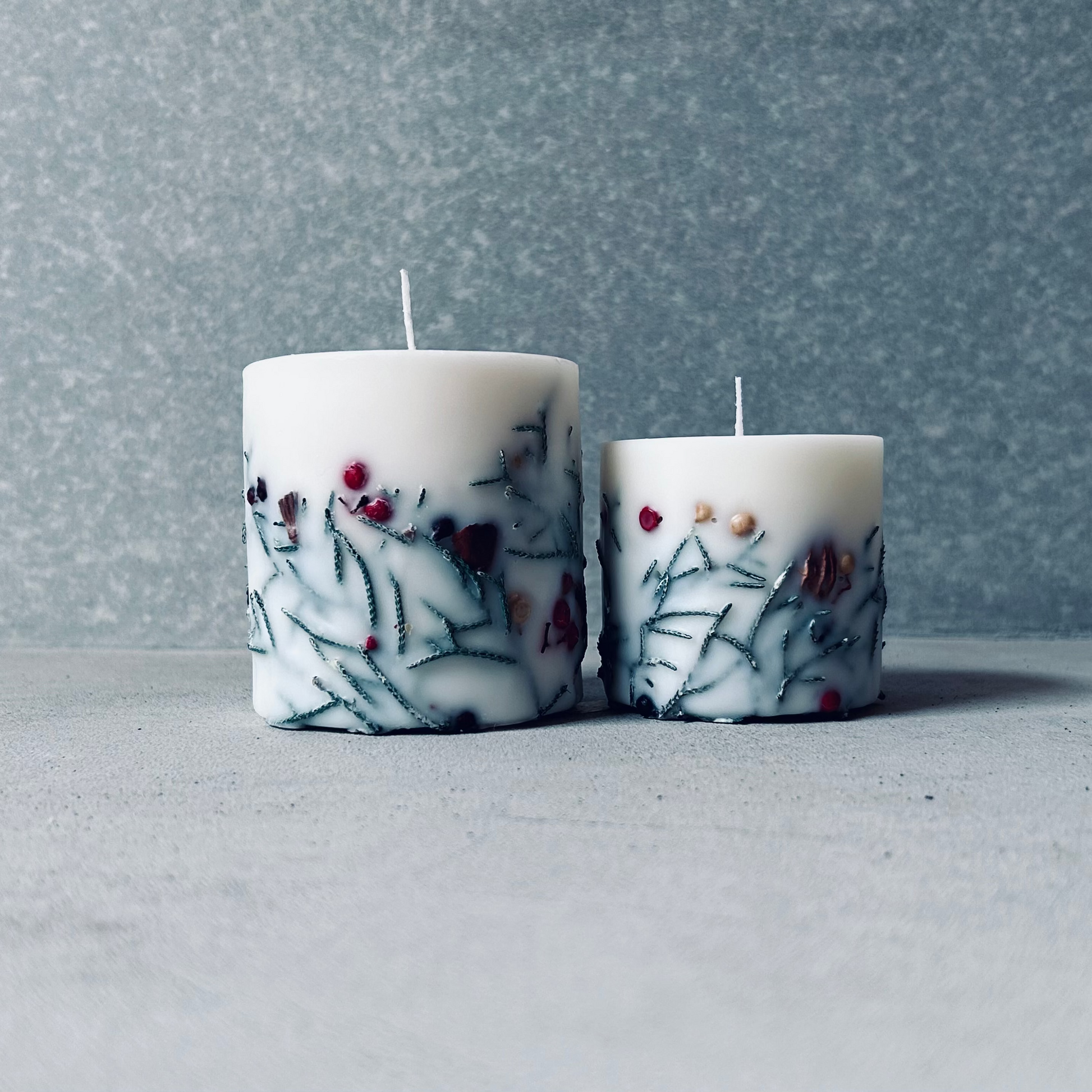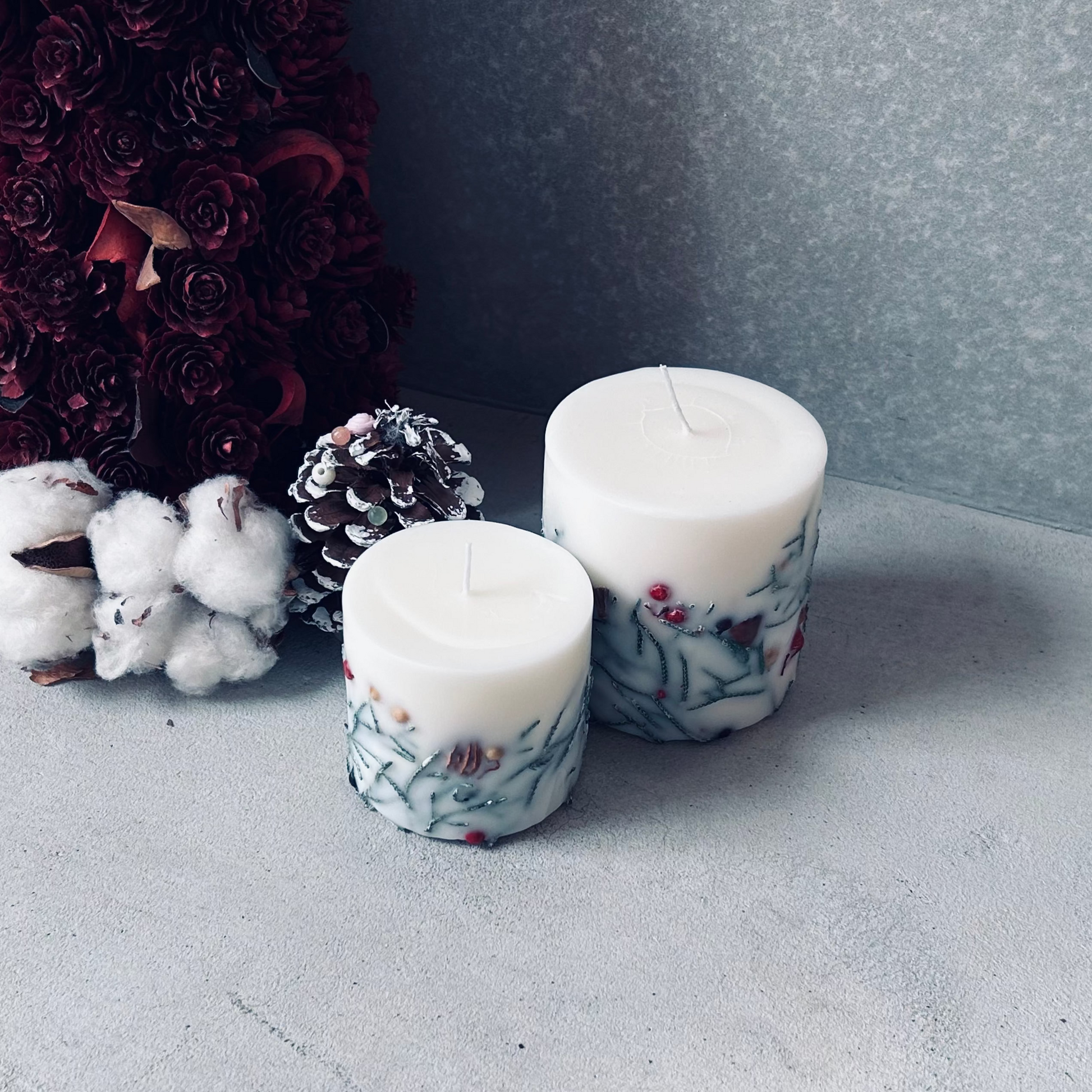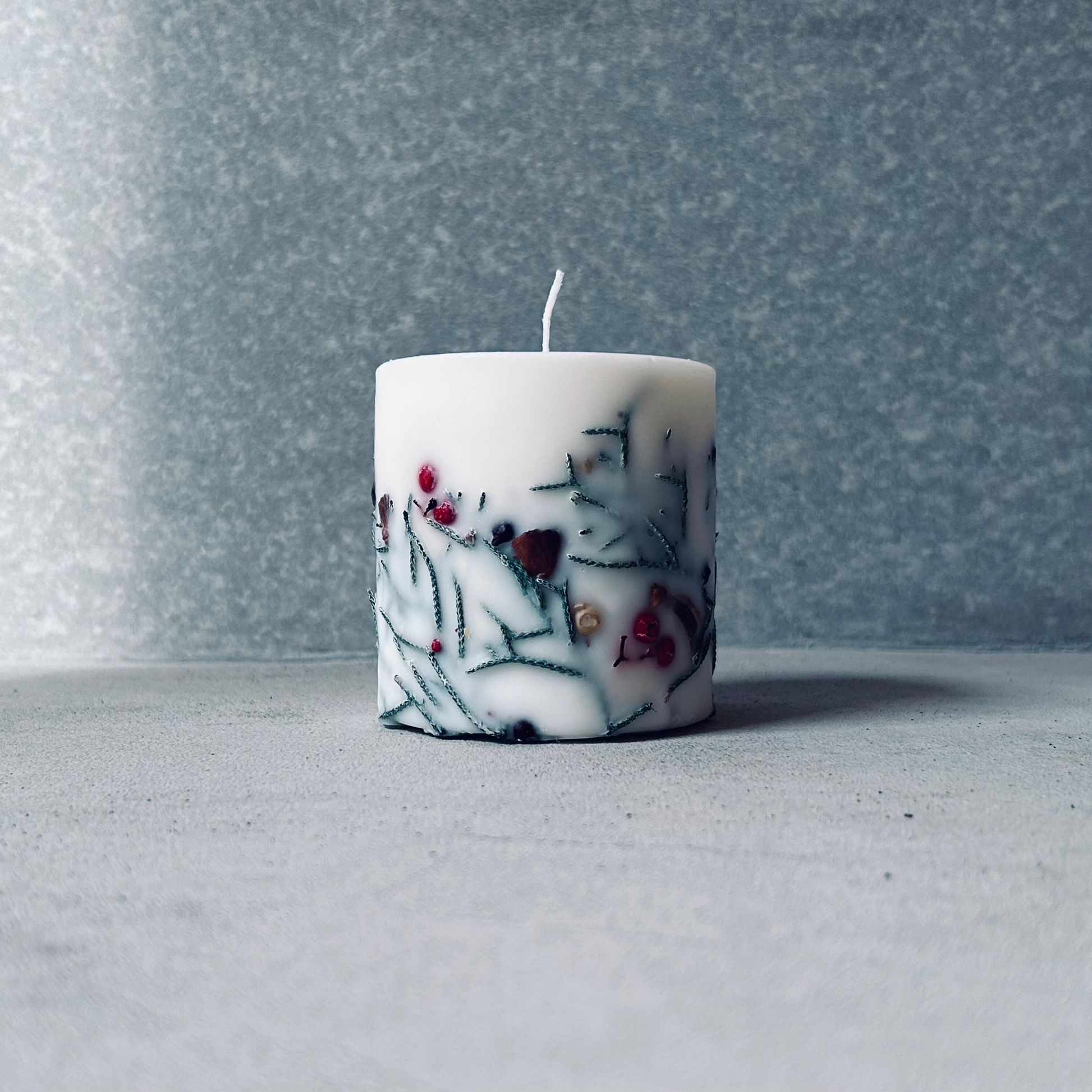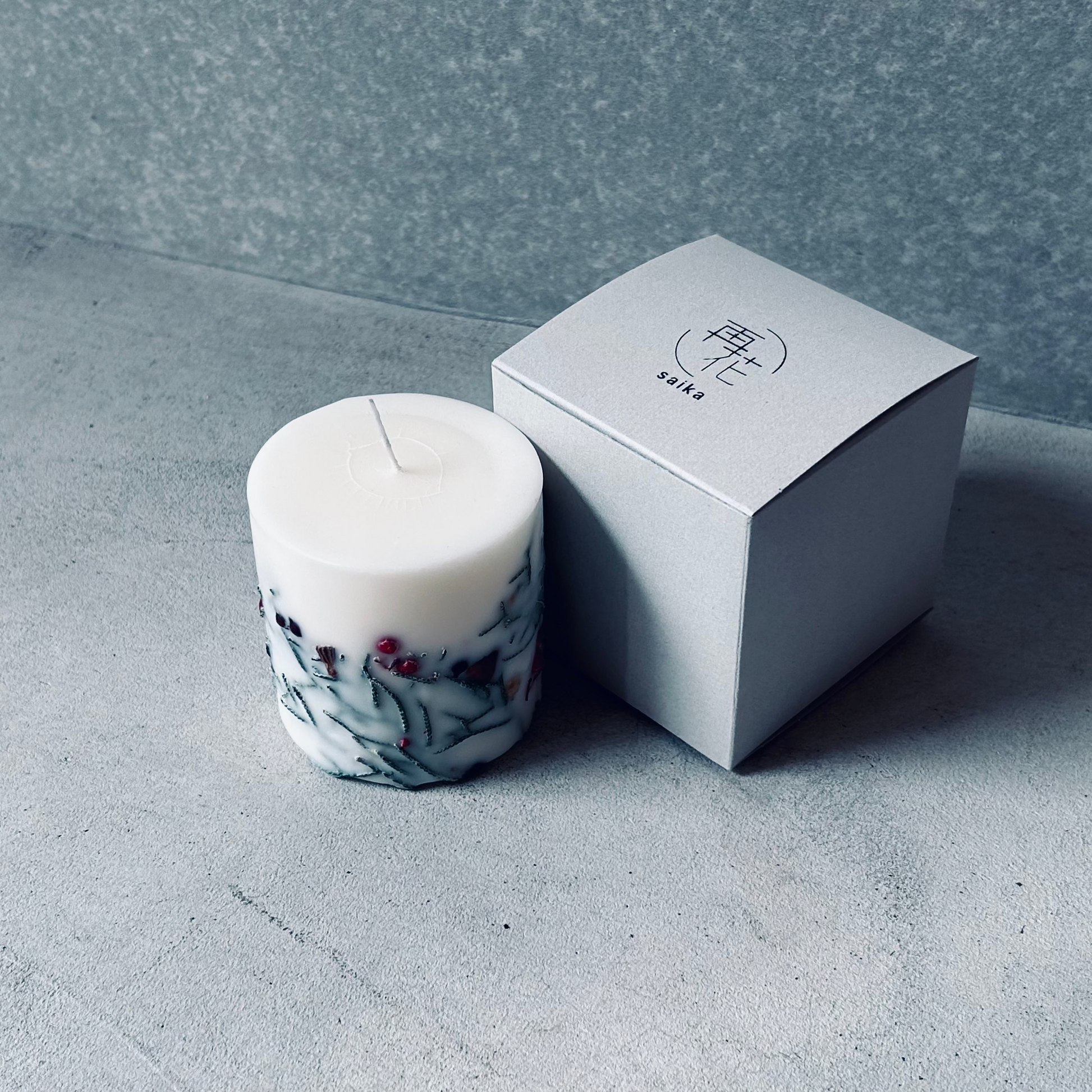 クリスマスカラーの草木を基調に、クリスマスをイメージしたボタニカルキャンドル。
