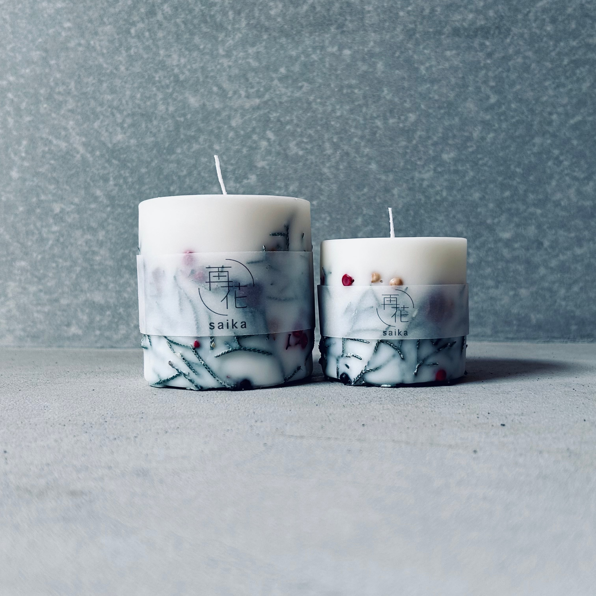 規格外やお花屋さんの売れ残り、イベントや撮影で使用したお花、剪定された草木など、一度役目を終えた草花を主に使用しているアップサイクルキャンドルです。