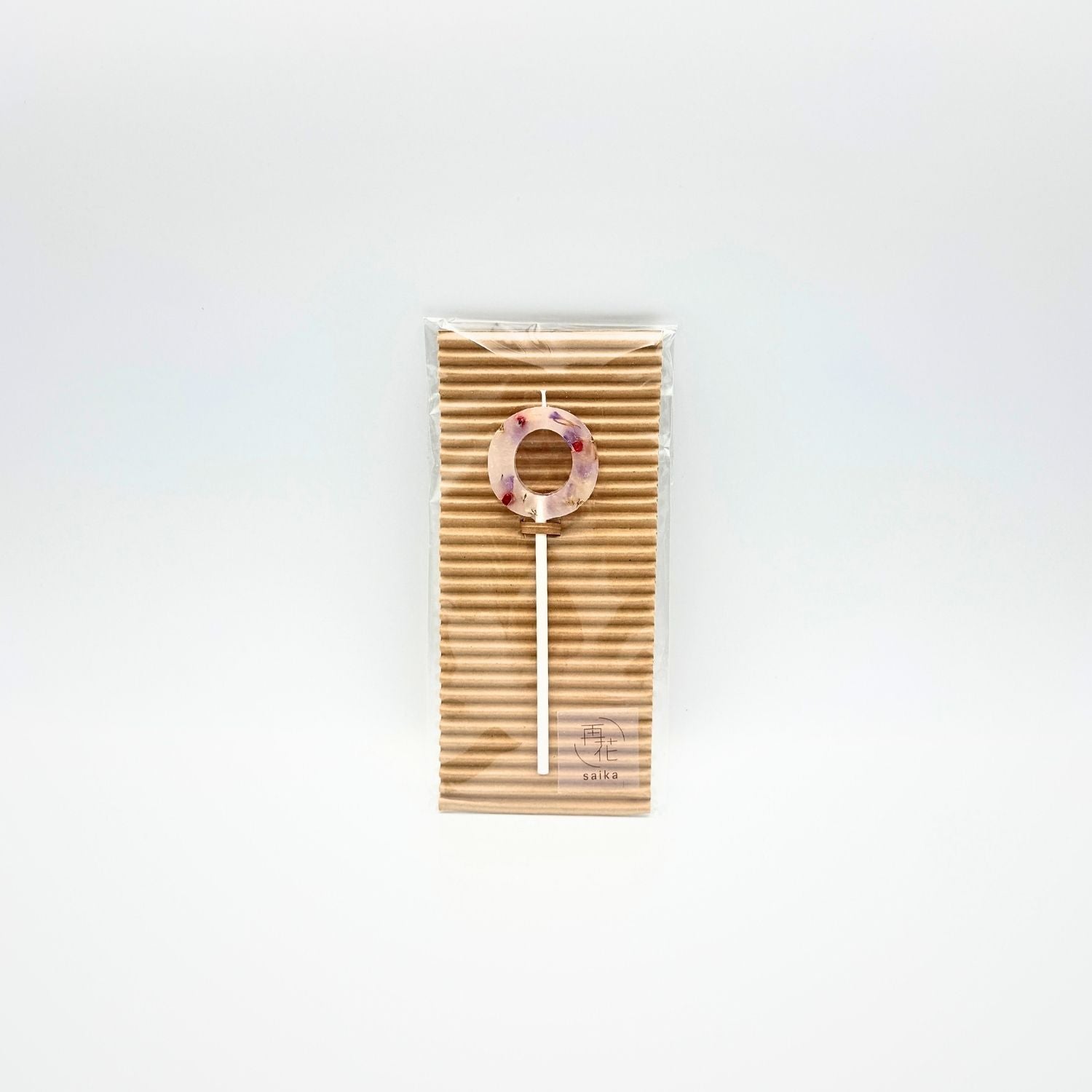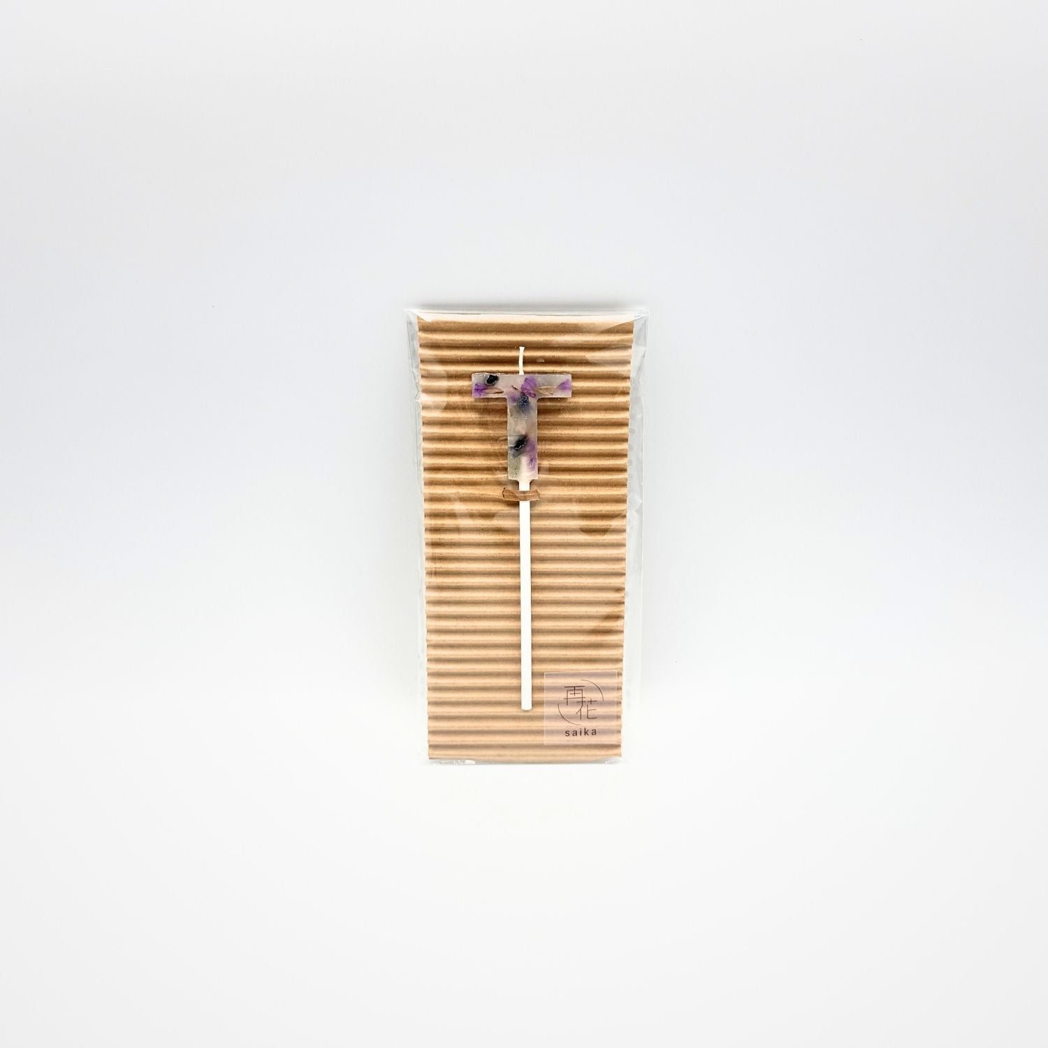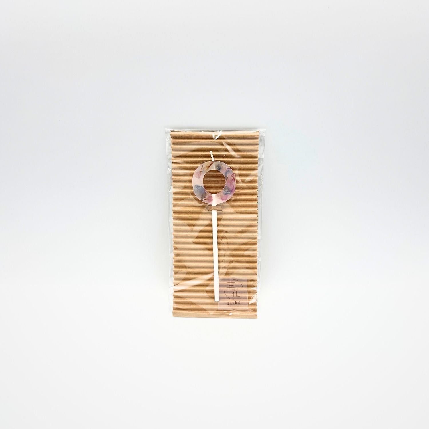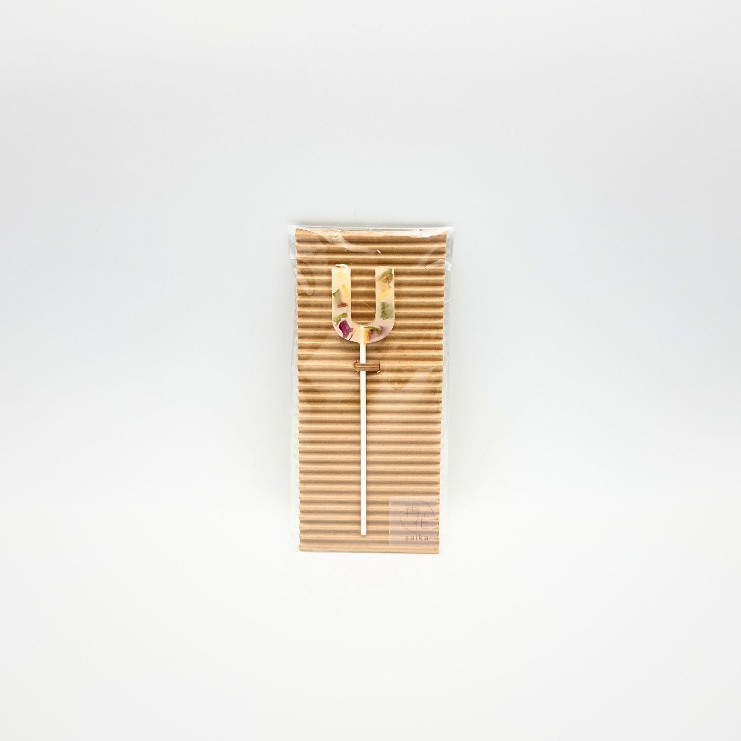 規格外や売れ残りなどの理由で、キレイに咲いているまま捨てられてしまう予定だった “ロスフラワー“ の花びらや葉や枝のかけらを集めて作ったロリポップ型のキャンドルです。