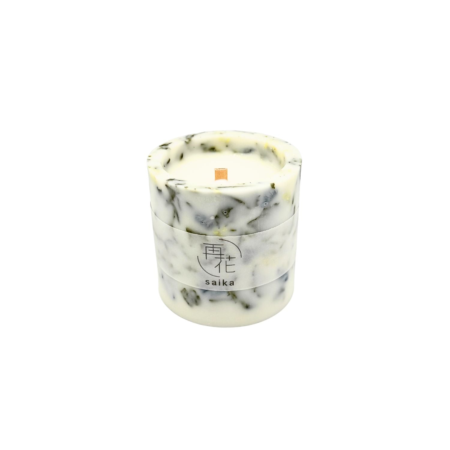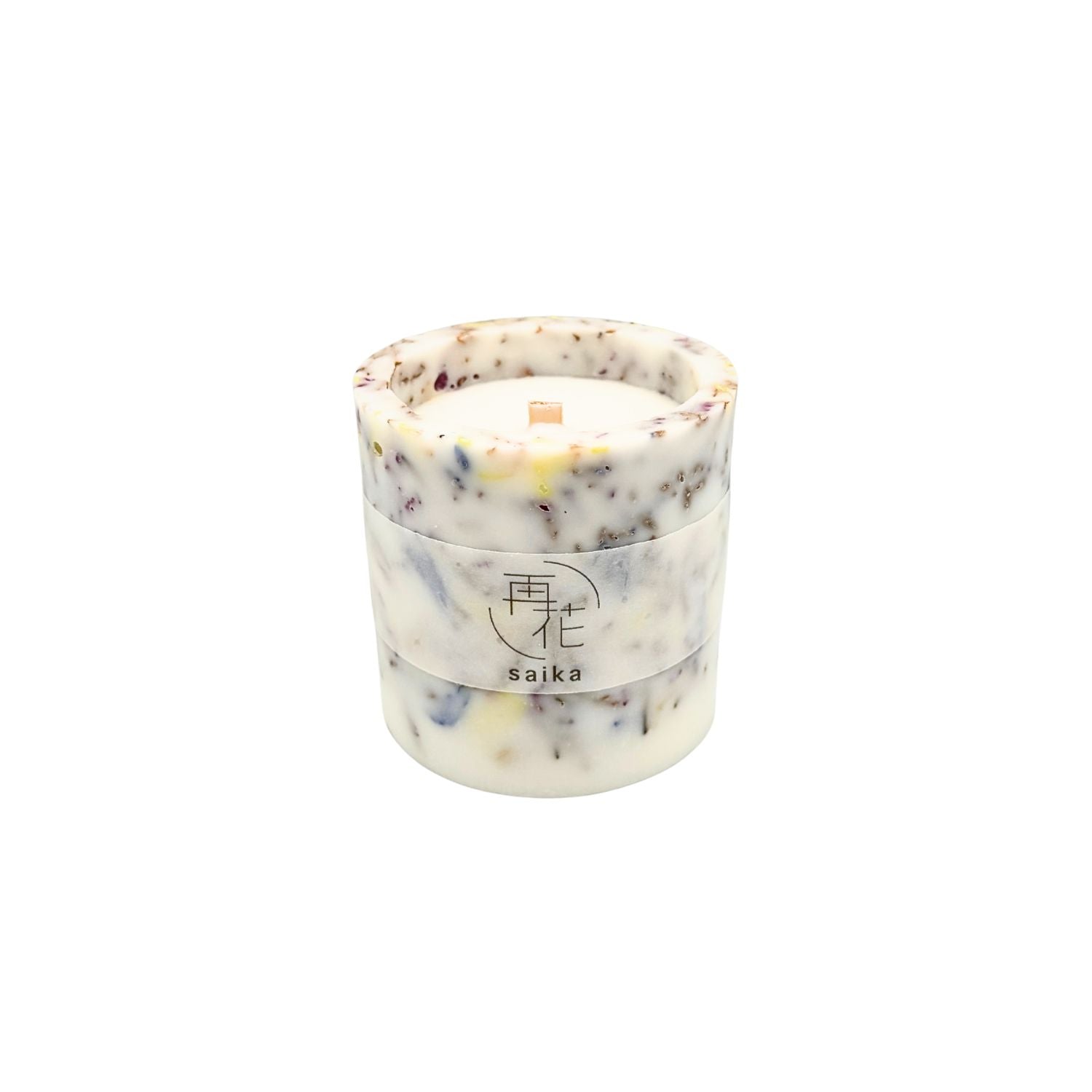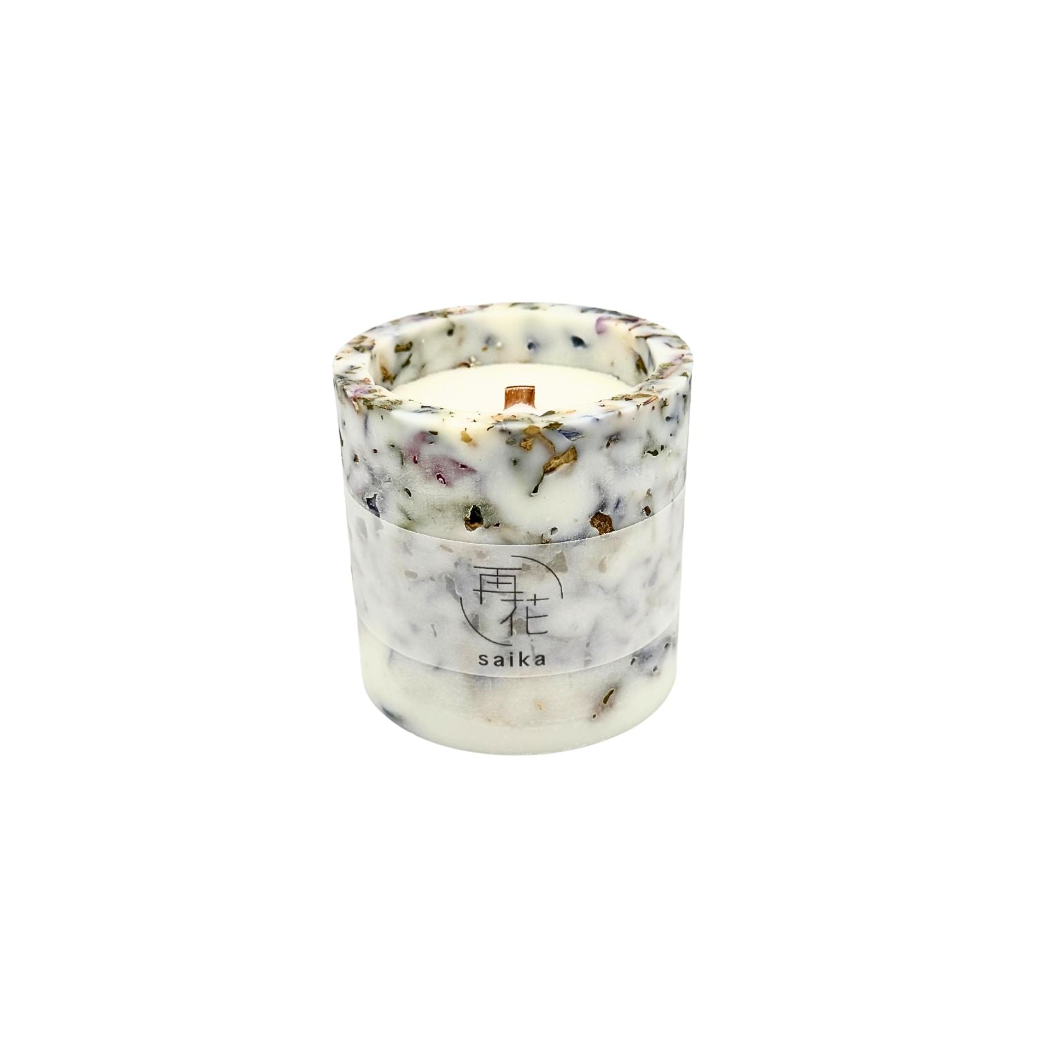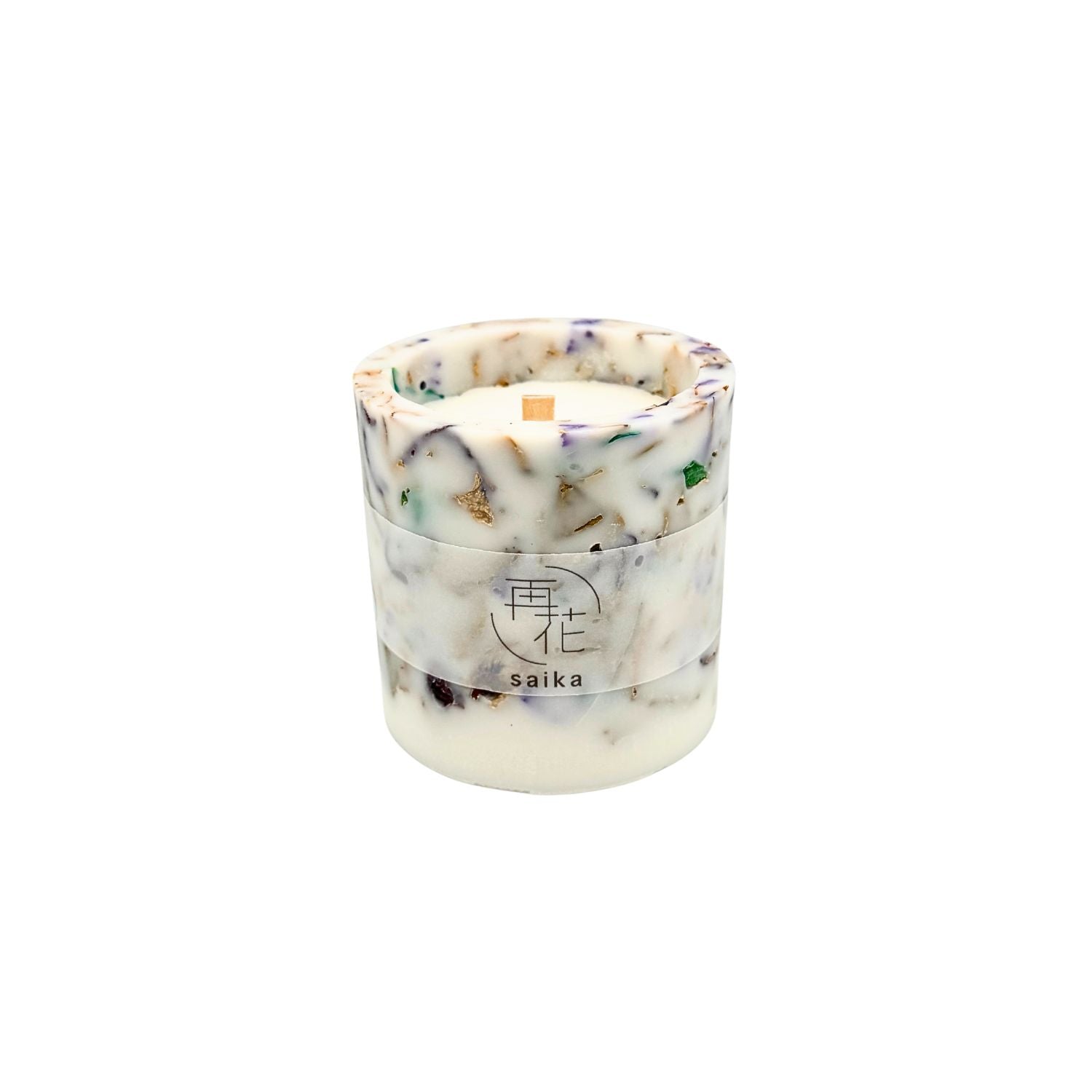 ボタニカルキャンドルやメッセージキャンドルを制作している際に出る花びらや葉や枝のかけら(Piece)を捨てずに集め、色分けして作ったキャンドルです。