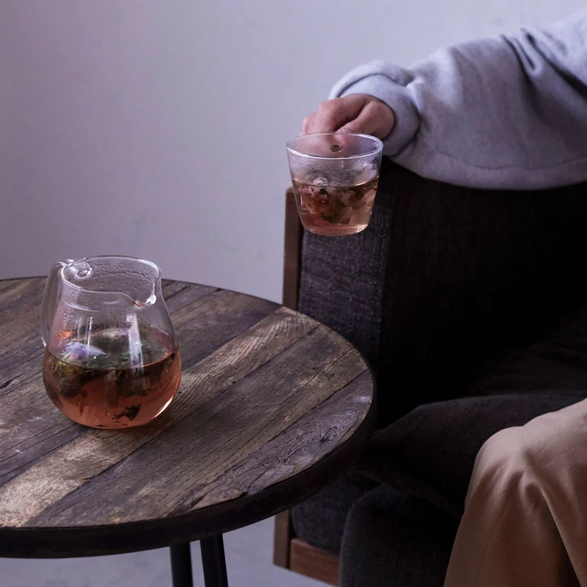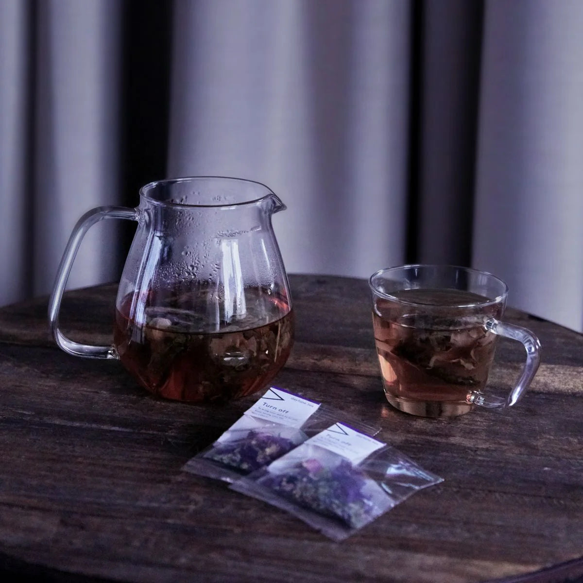 Turn offブレンドは、終える時間をきちんととるための、優しい味の薄茶色のティー。バラ、ラベンダーの上品な華やかさ、フローラルな香りを活かしたブレンドで、品のある香り高さを求め、有機・農薬不使用で丁寧に育てられている国産のバラ、ラベンダーを使用。 甘く優しいスペアミントと爽やかな香りのレモンバームもアクセントにプラス。 ダマスクローズのつぼみで香り、見た目の可愛らしさも演出。バラ・コモンマロウのアントシアニンの働きにより、驚くほど美しい青色から灰色へと、夜が深まるように色が変化していきます。この贅沢なブレンドは、見た目も香りも素晴らしく、一杯飲めばリラックスできることでしょう。